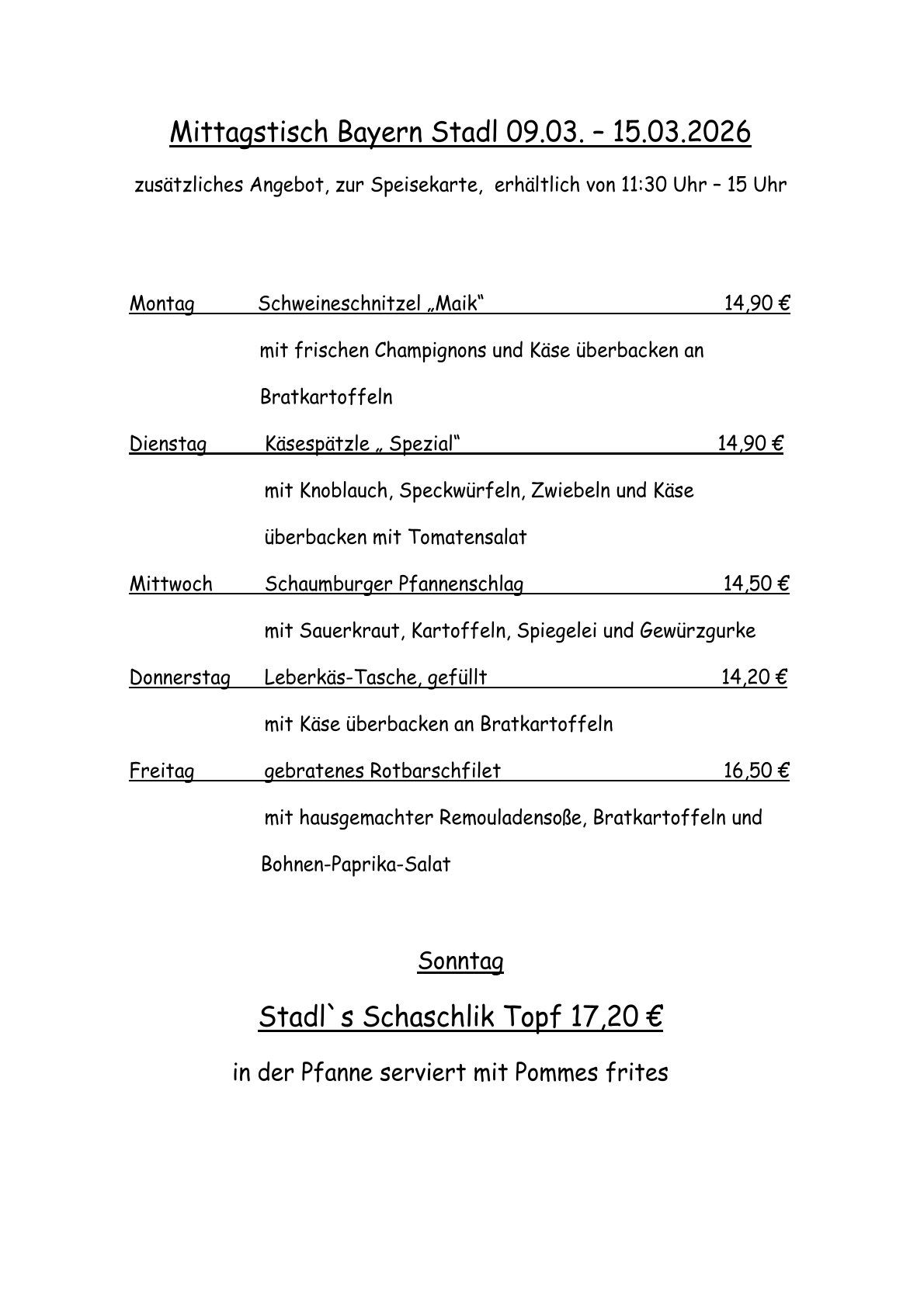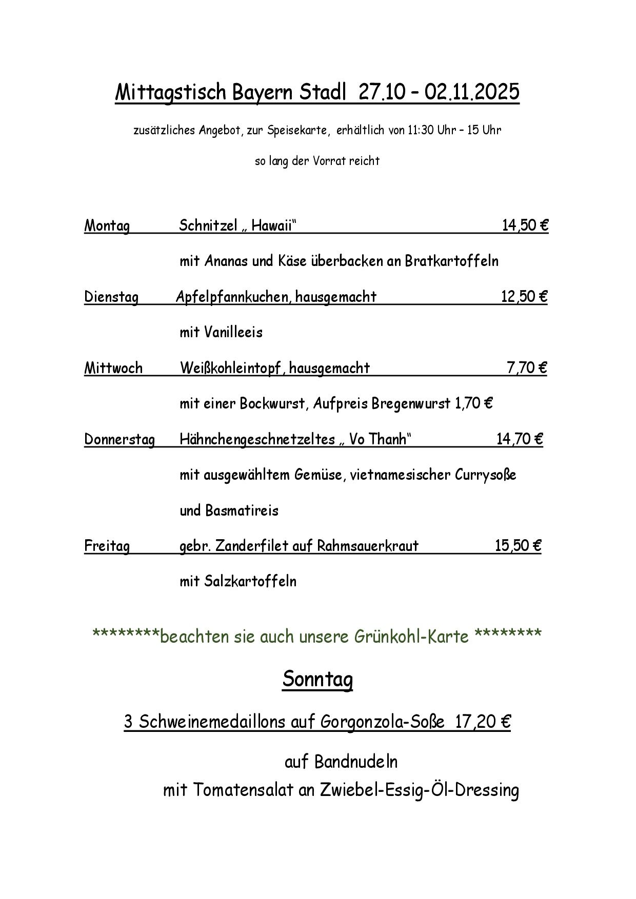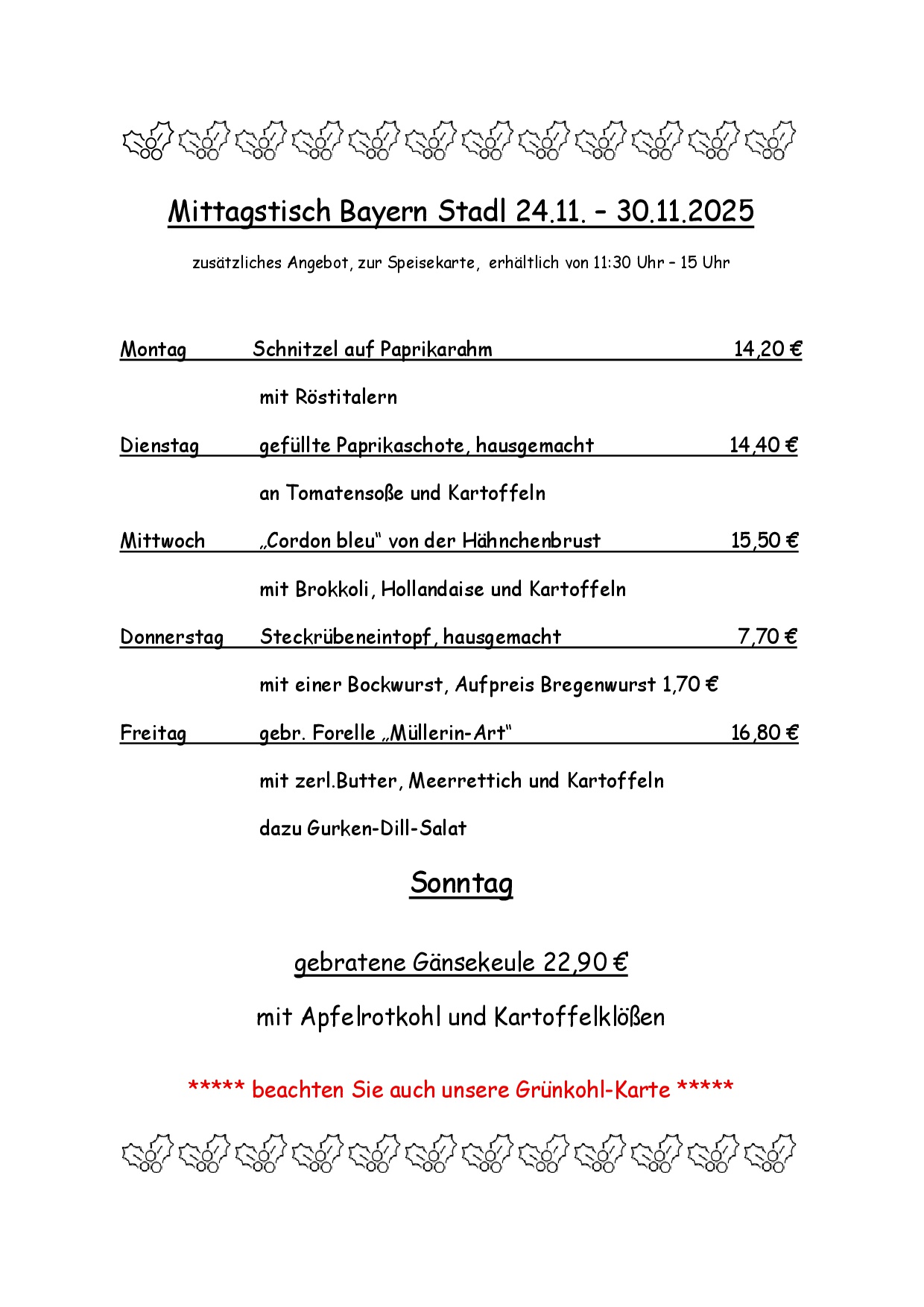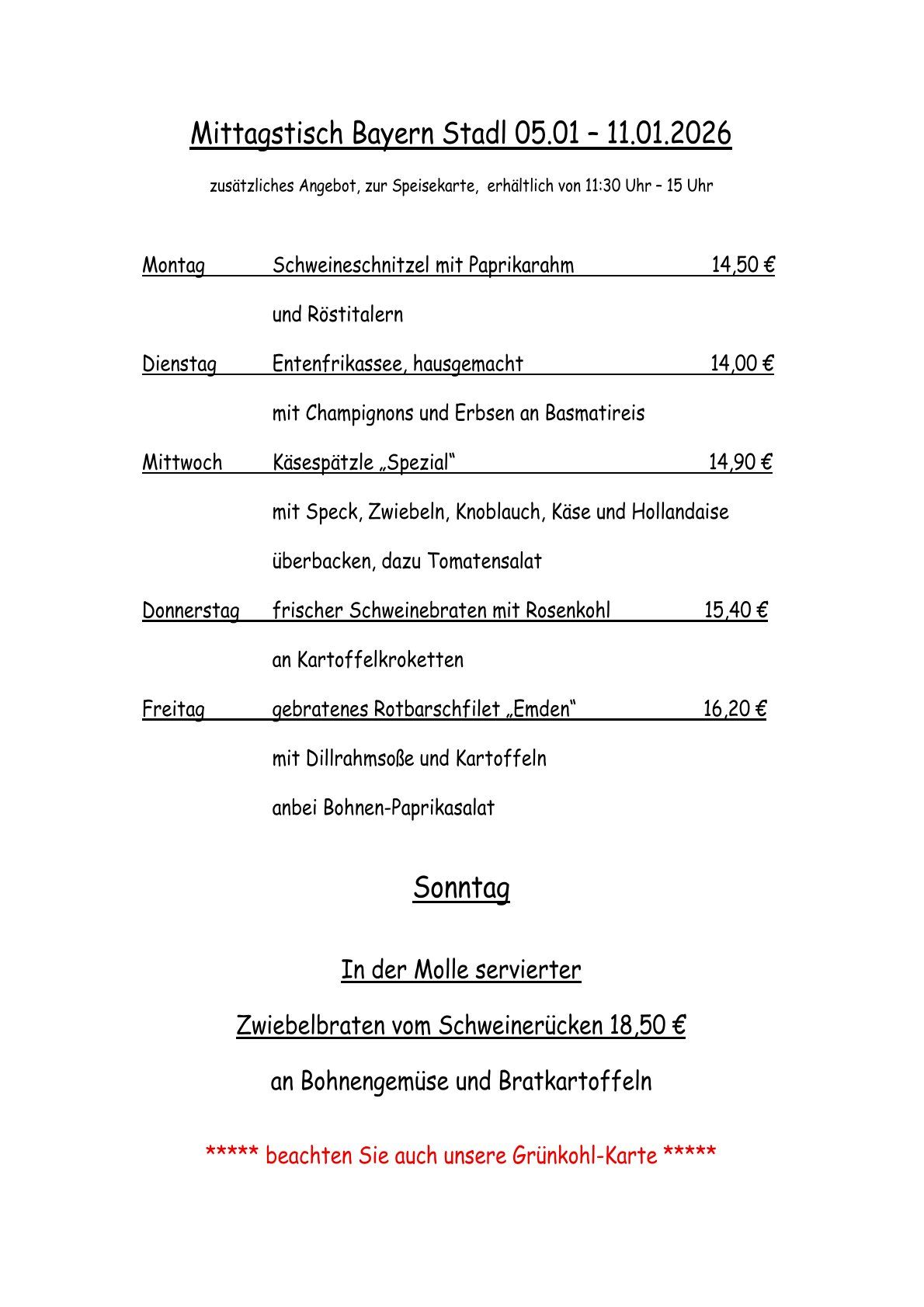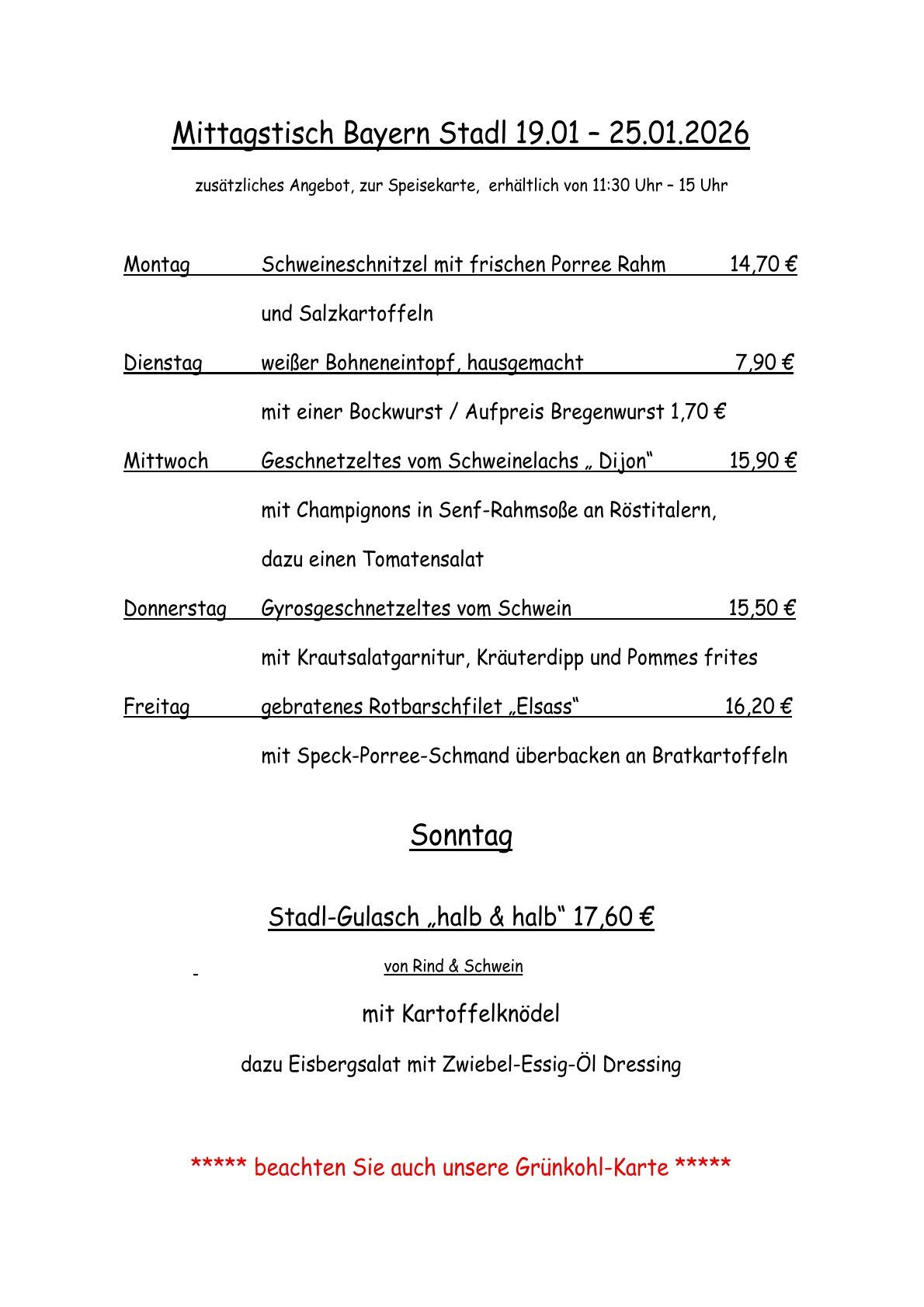 Unsere Mittagskarte
