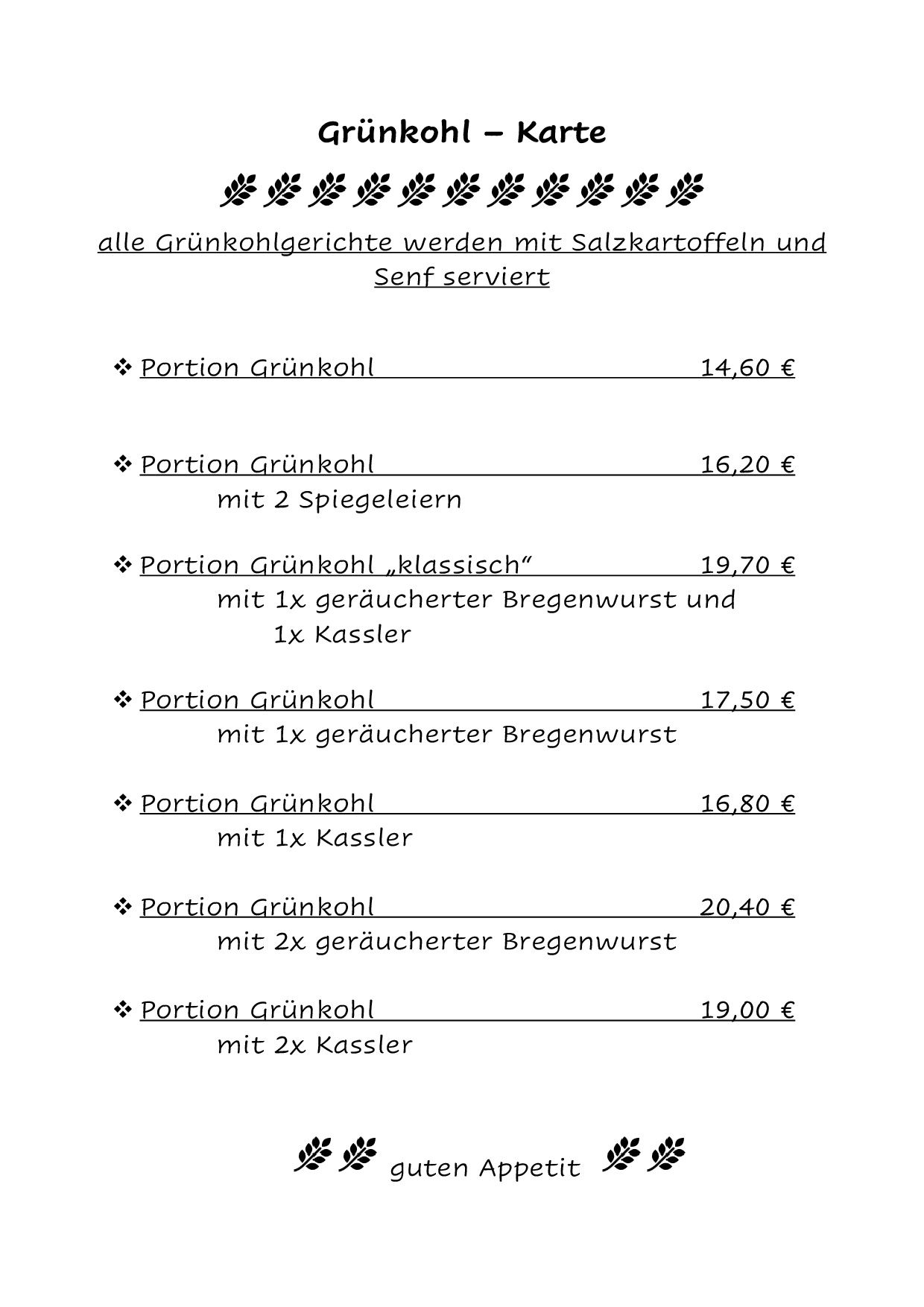 Saisonal wechselnd von Grünkohl zum Spargel oder zur Bierkartenkarte - lassen Sie sich überraschen.